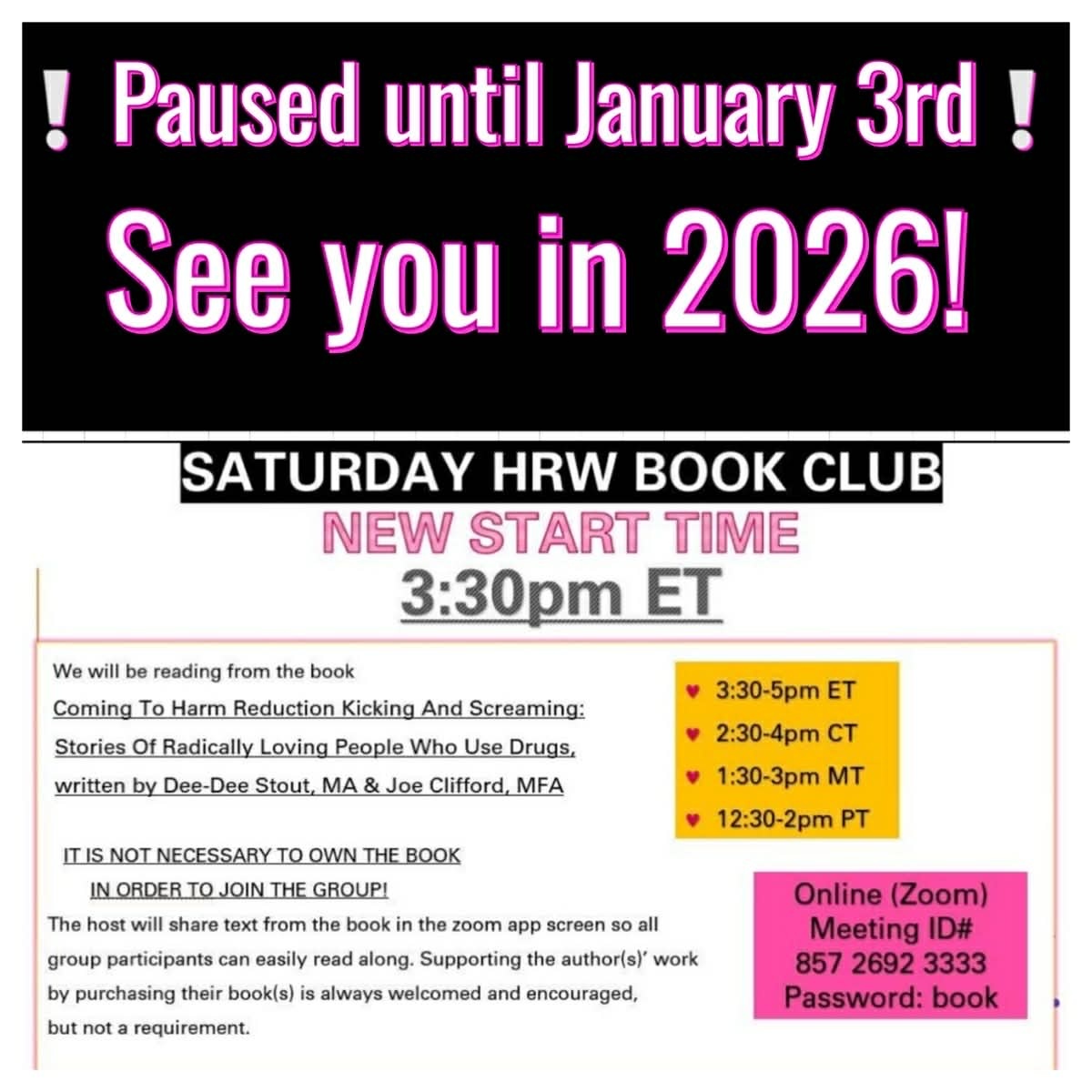 Saturday HRW Book Club (PAUSED - UNTIL JAN 3RD 2026!)