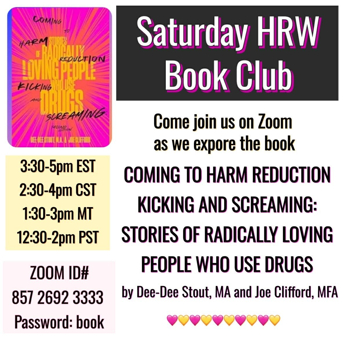 We are reading the book Coming To Harm Reduction Kicking and Screaming: Stories of Radically Loving People Who Use Drugs, by Dee-Dee Stout, MA and Joe Clifford, MFA